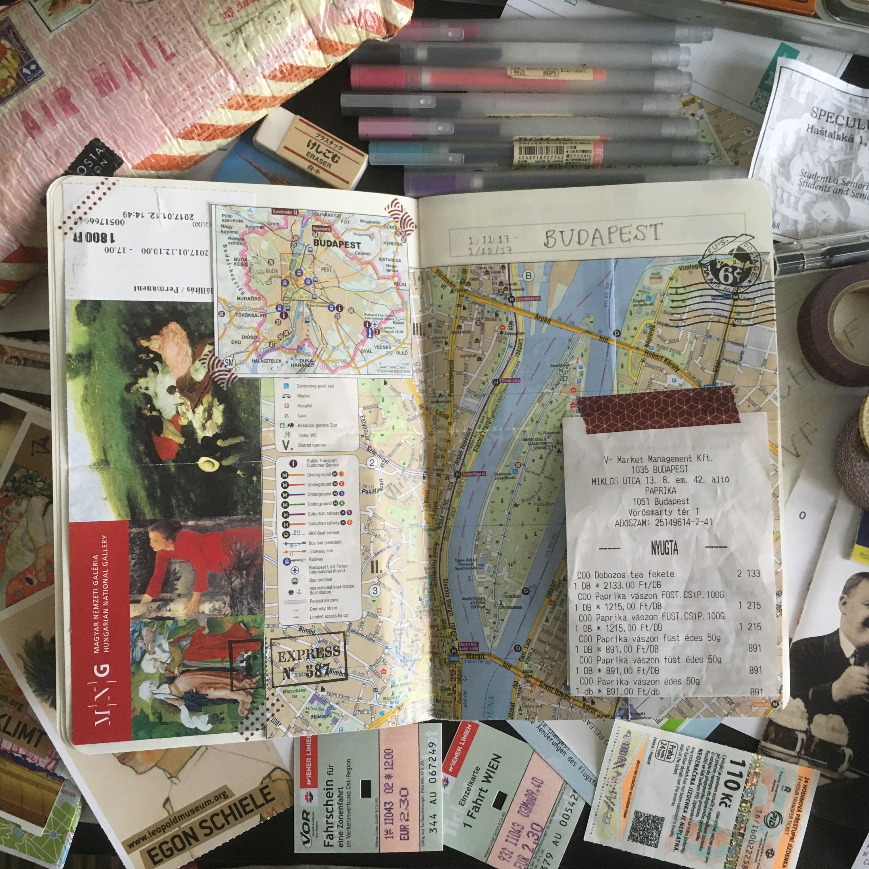 For years I have wanted to scrapbook memories from trips, only to collect ticket stubs and have them sit in a box untouched. On a recent trip to Prague, I met a lovely couple from Wisconsin, in a beer museum. Sitting in the dark cellar, we sampled beers and I had the honor to sign Danny’s travel journal. He is a newspaper writer, and told us that everyday he writes or adds something to his journal. It was an incredible log of all of the places he has been to around the world. As much as I want to be someone that journals everyday, I just never seem to make it more than two days. As a compromise, and with the strength of inspiration from Danny’s journal, I have decided to try to keep a travel journal. Below are photos of my journal pages from Budapest, Vienna, Prague, and Québec.