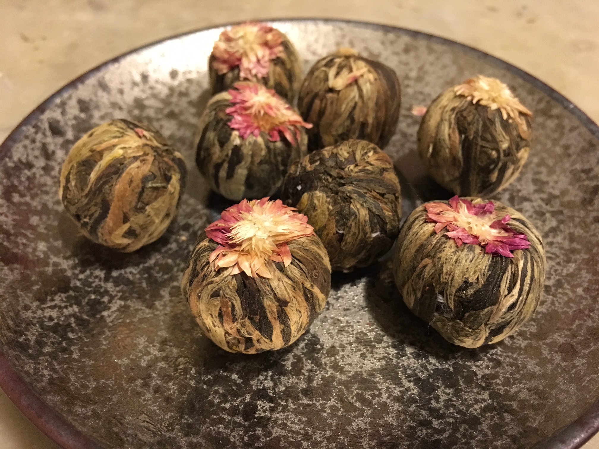 Arguably the prettiest type of tea, “blooming teas” or “flowering teas” are tea leaves and flowers that have been dried and compressed to “bloom” when steeped in water. Preparing blooming tea is incredibly simple, and stunning to watch unfold. You can find flowering teas at many specialty tea shops. These purple amaranth flowering teas were brought back for me from a bazaar in Turkey, by a loved one.