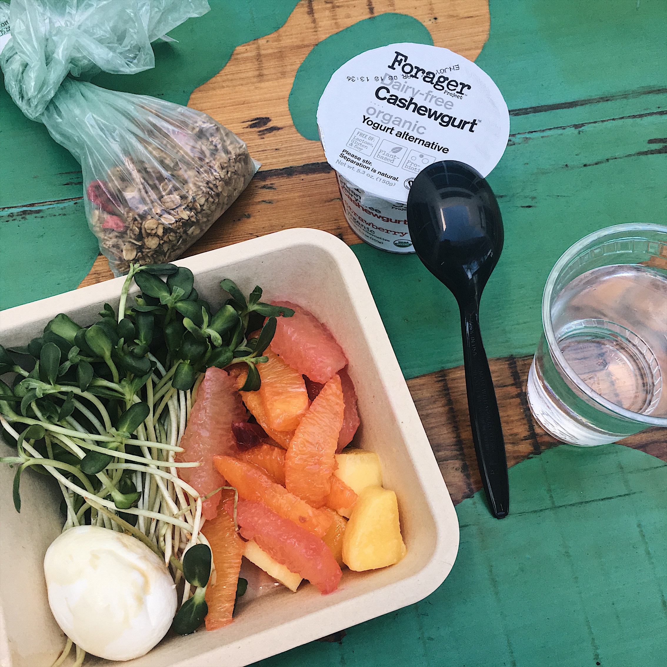 If breakfast is included with the hotel stay, I usually opt for fruit and oatmeal. This time there was a $9 per person/ day charge. No thanks! On day one we went to WholeFoods and loaded up on fruits, nuts, yogurt, oatmeal, and other healthy snacks to eat over the next few days.