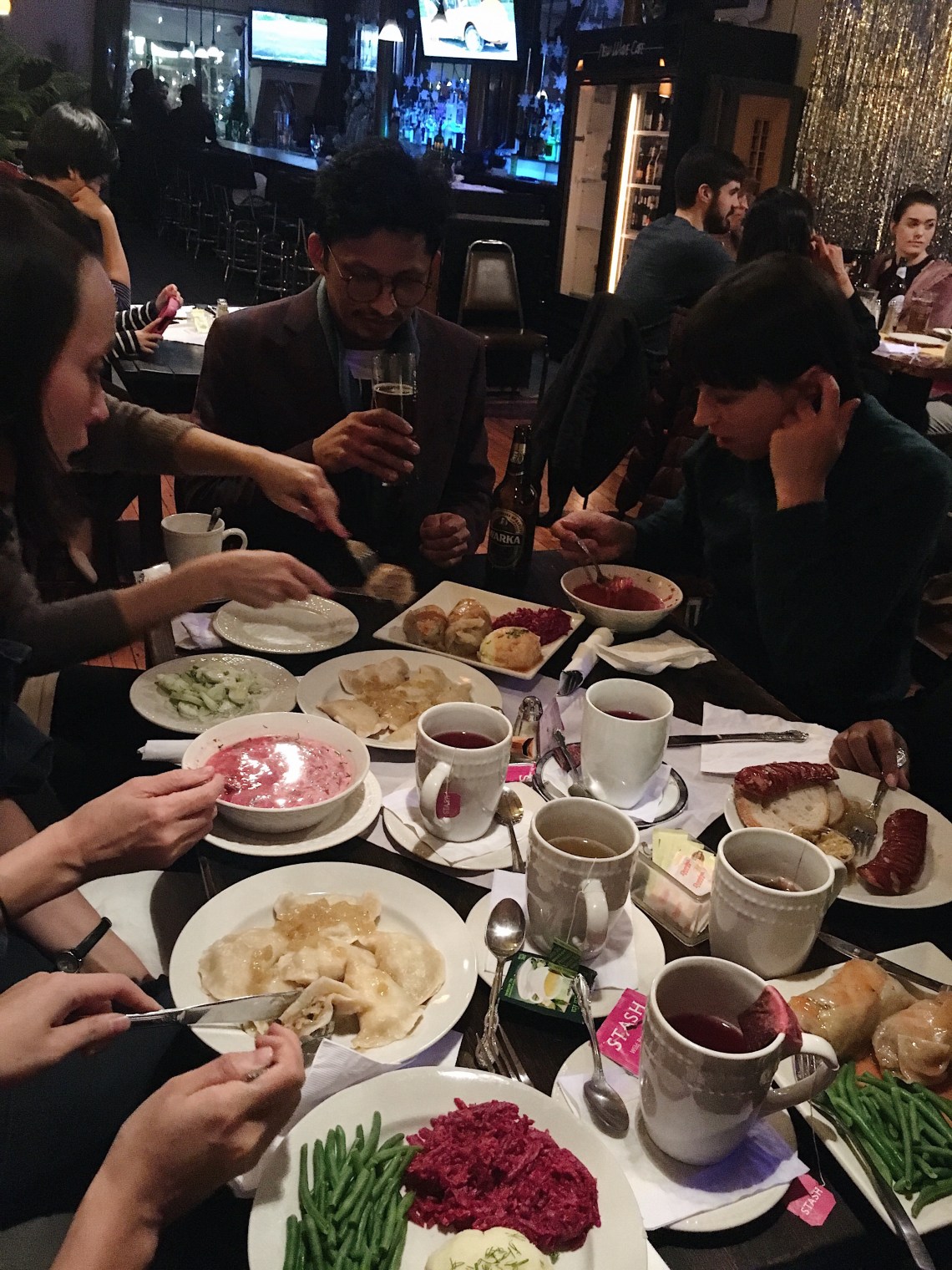 After the two hour bus ride Kim and I headed to New Wave Cafe for a Polish dinner. I had steamed green beans, beets, and mashed potatoes. The raspberry hibiscus tea was my highlight, but the more traditional dishes got thumbs up. After eating we headed to the venue for a class taught by Adam and Ciko, and then Milonga Qilombo hosted by Meredith Klien.