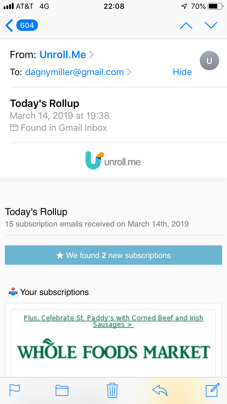 Unroll me is a free email service that helps you figure out where you are subscribed to, unfollow these companies, keep the ones you like, and most importantly store your “meh” category as one huge email. I selected the morning email option for my batched emails, meaning around 8:30 am everyday I get ONE email with all of the spammy-but-I-may-want-a-coupon-sometime emails. I save time by reading them all at once, deleting them all at once, and not getting distracted by every ping coming into my inbox.