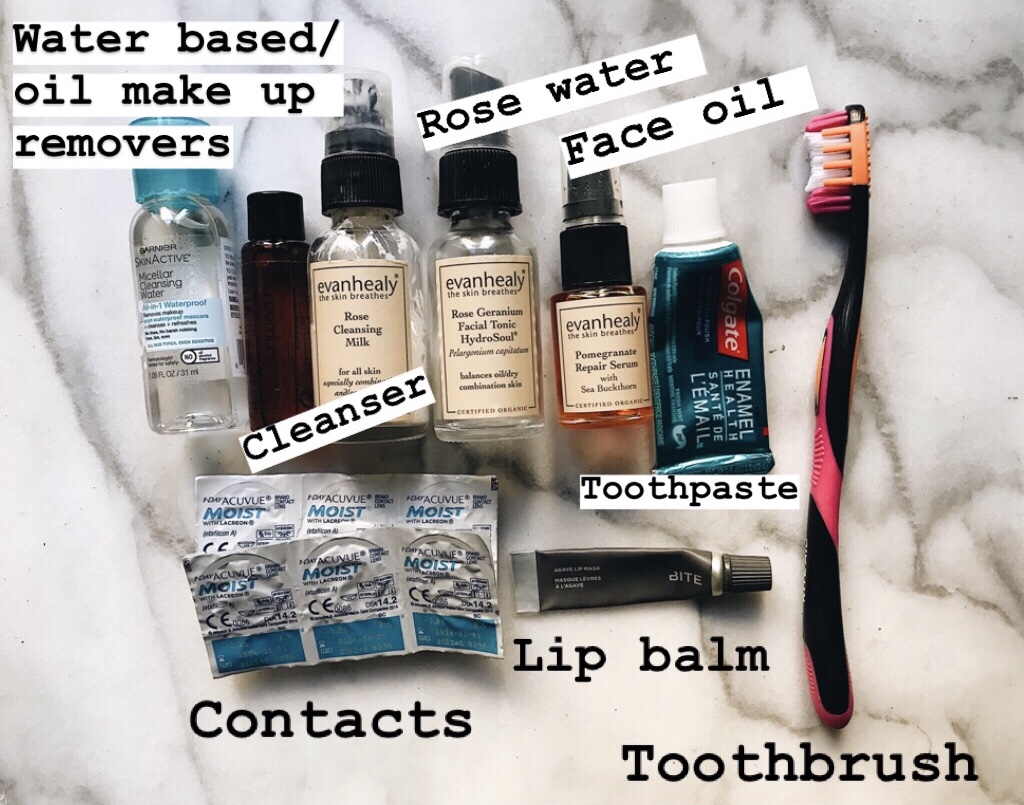 Complete basics for skincare as well. I aaaaalways remove my makeup before sleeping. I was my hair the morning that I am leaving for a marathon (usually Friday) and I don’t wash it until I get home Sunday night so I stopped carrying shampoo and conditioner.